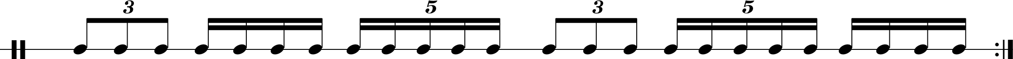 Practice "gear-shifting" between beat divisions of 2, 3, 4, 5, and 6 by practicing the rhythm exercise containing all adjacencies of all beat divisions 2 through 6.