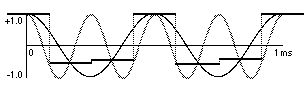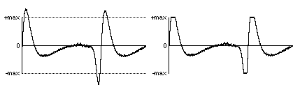 The clipped sample will often sound quite different from the original. Sometimes this type of clipping causes only a slight distortion of the sound that is heard as a change in timbre. More often though, it sounds like a very unpleasant noise added to the sound. For this reason, it's very important to take precautions to avoid clipping. The amplitude of the electrical signal should not exceed the maximum expected by the ADC.