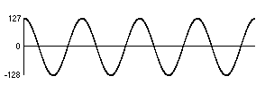 where A is the amplitude of the wave, f is the frequency of the wave, n is the sample number (0,1, 2,3, etc.), R is the sampling rate, and w is the phase. If we enter values for A, f,and w, and repeatedly solve for y while increasing the value of n, the value of y (the output sample) will vary sinusoidally.